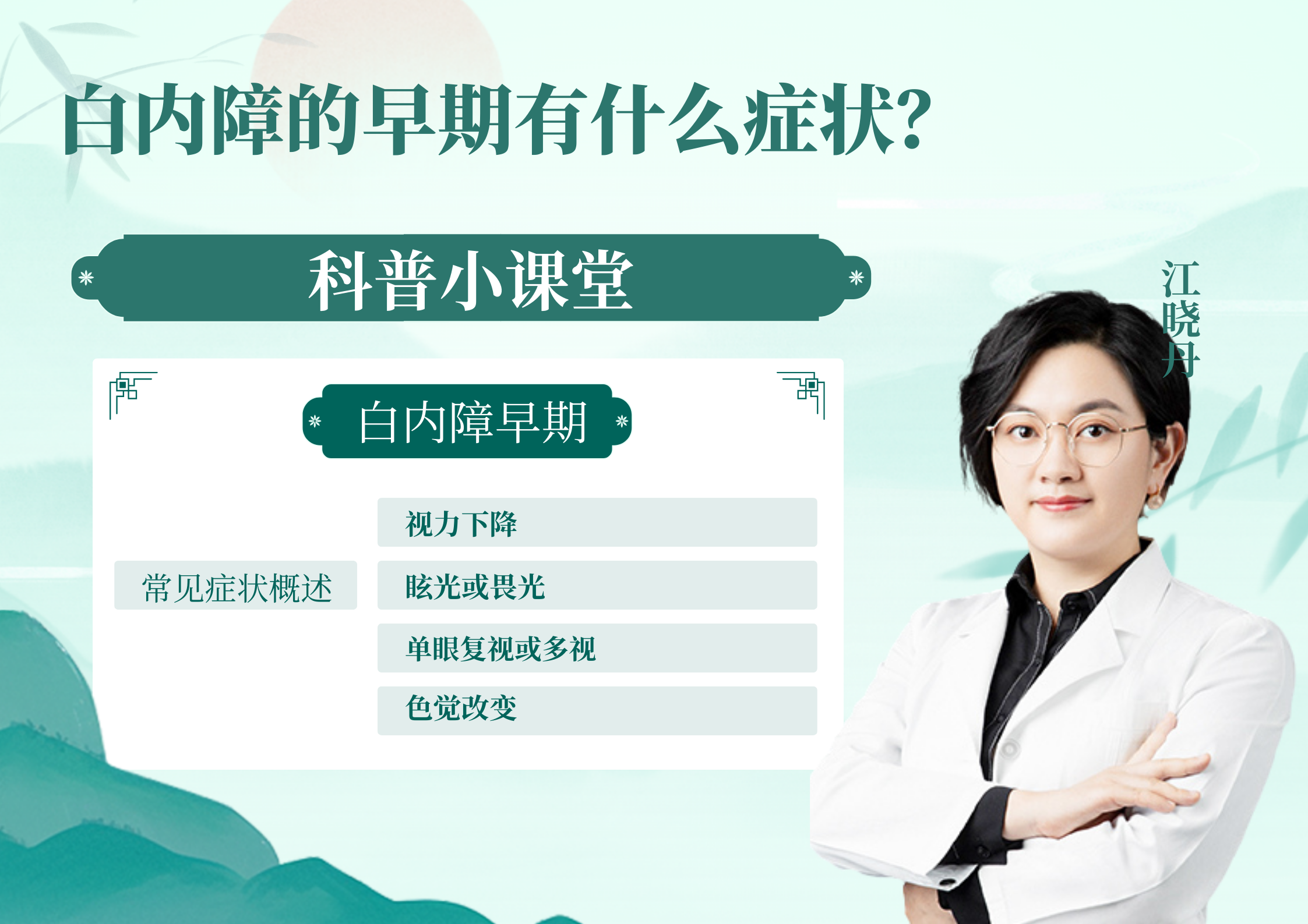 白内障的主要症状包括视力下降、眩光、单眼复视、色觉改变等,具体表现因个体和病变阶段不同而有所差异。